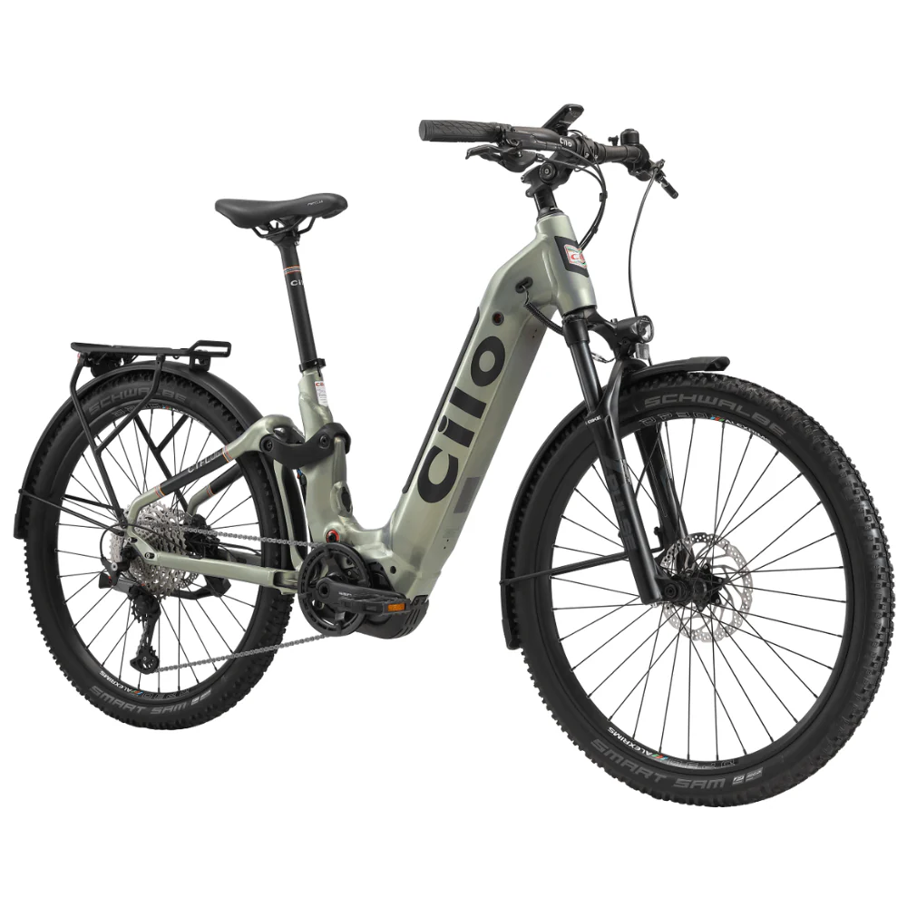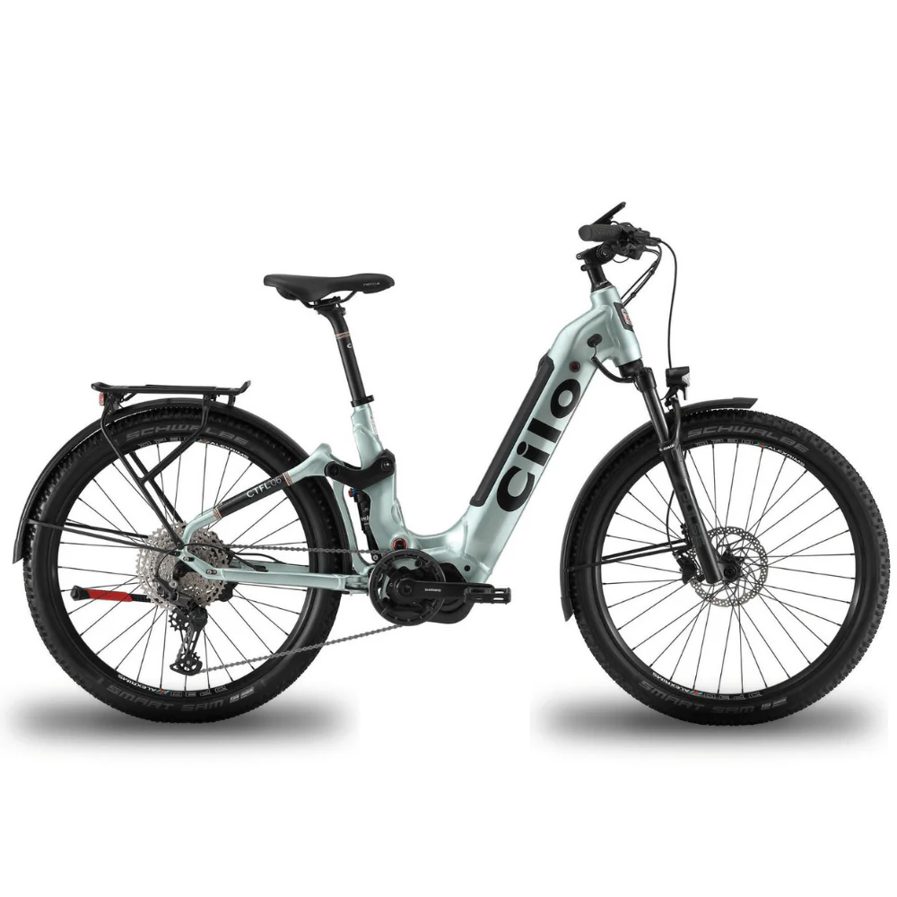 Since the 20th century, Cilo has led the way in sustainable mobility, blending eco-conscious innovation with reliable performance. The Rivertour CTFL06 is no exception. It pairs Schwalbe Smart Sam K-Guard tyres for excellent grip with a smooth Shimano Deore 12-speed drivetrain and Rapidfire Plus shifters. Its premium front and rear suspension soak up bumps, making it perfect for commuting or weekend rides.