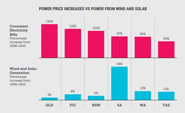 The report goes on to point out other key reasons as to why the Australian energy sector needs to change including the fact that the states that use fossil fuels the most are the states in which electricity prices have risen the most.