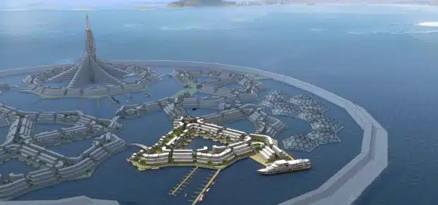 The project is expected to start out with hub businesses – most likely in aquaculture, cleantech and tourism – then it will grow organically into a village and ultimately into a city. As technology is developed and tested, the community will move further away from shore.